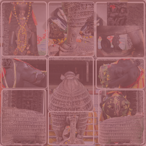 पाँचवीं पंक्ति में आठ वसुओं सहित अट्ठावन पुरुष आकृतियाँ हैं। छठी पंक्ति में हनुमान, गणेश और एक नाग सहित छप्पन पुरुष आकृतियाँ हैं। उन सभी को एक दंड (छड़ी) और एक जल का घड़ा पकड़े हुए दिखाया गया है। सातवीं पंक्ति में छप्पन आकृतियाँ हैं, सभी दो भुजाओं वाली और अर्धलीलासन मुद्रा में बैठी हुई हैं। आठवीं पंक्ति में गणेश और वीरभद्र के साथ सप्तमातृकाओं सहित इकसठ आकृतियाँ उकेरी गई हैं। इस पंक्ति में एक घोड़े की आकृति पाई जाती है जिसे रंगराजन कल्कि के रूप में पहचानते हैं।3 नौवीं पंक्ति में चौहत्तर पुरुष आकृतियाँ मौजूद हैं जिनमें एकादश-रुद्र शामिल हैं, जिन्हें चार भुजाओं वाले और अपने ऊपरी हाथों में एक साँप और त्रिशूल पकड़े हुए दिखाया गया है। दसवीं पंक्ति में गणेश की तीन छवियों के साथ, पुरुष और महिला दोनों, गन्धर्वों की सतहत्तर आकृतियाँ हैं। बारहवीं पंक्ति में भैरवों और पुरुष देवताओं सहित चौहत्तर आकृतियाँ उत्कीर्ण हैं। तेरहवीं पंक्ति में दशावतार और लिंग-पूजक भक्तों सहित इक्यावन आकृतियाँ हैं। अंतिम पंक्ति, चौदहवीं पंक्ति में एक सौ दो आकृतियाँ हैं, सभी पुरुष और जल का घड़ा पकड़े बैठे हुए।